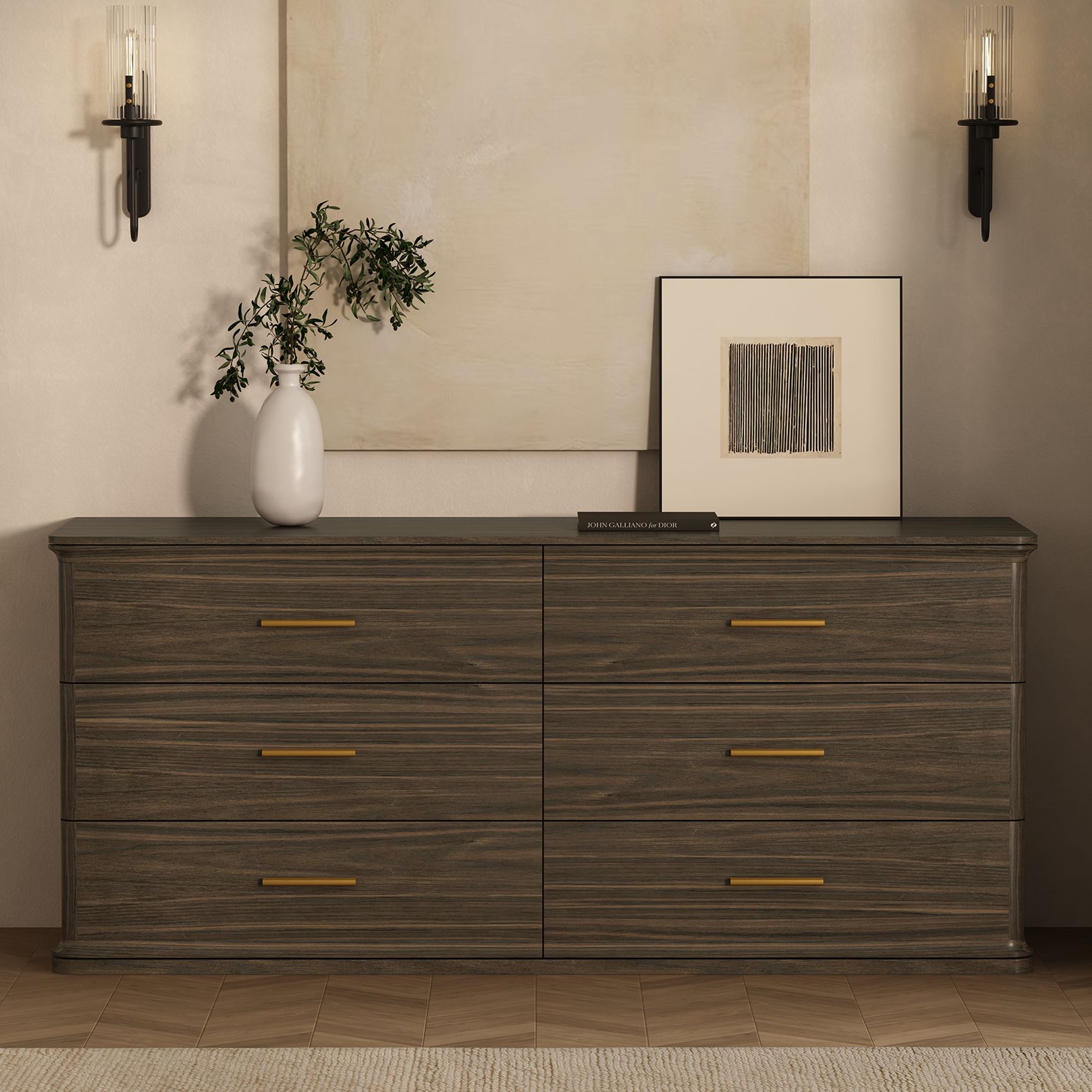 Clifford Traditional Dresser in Walnut (6-Drawer)