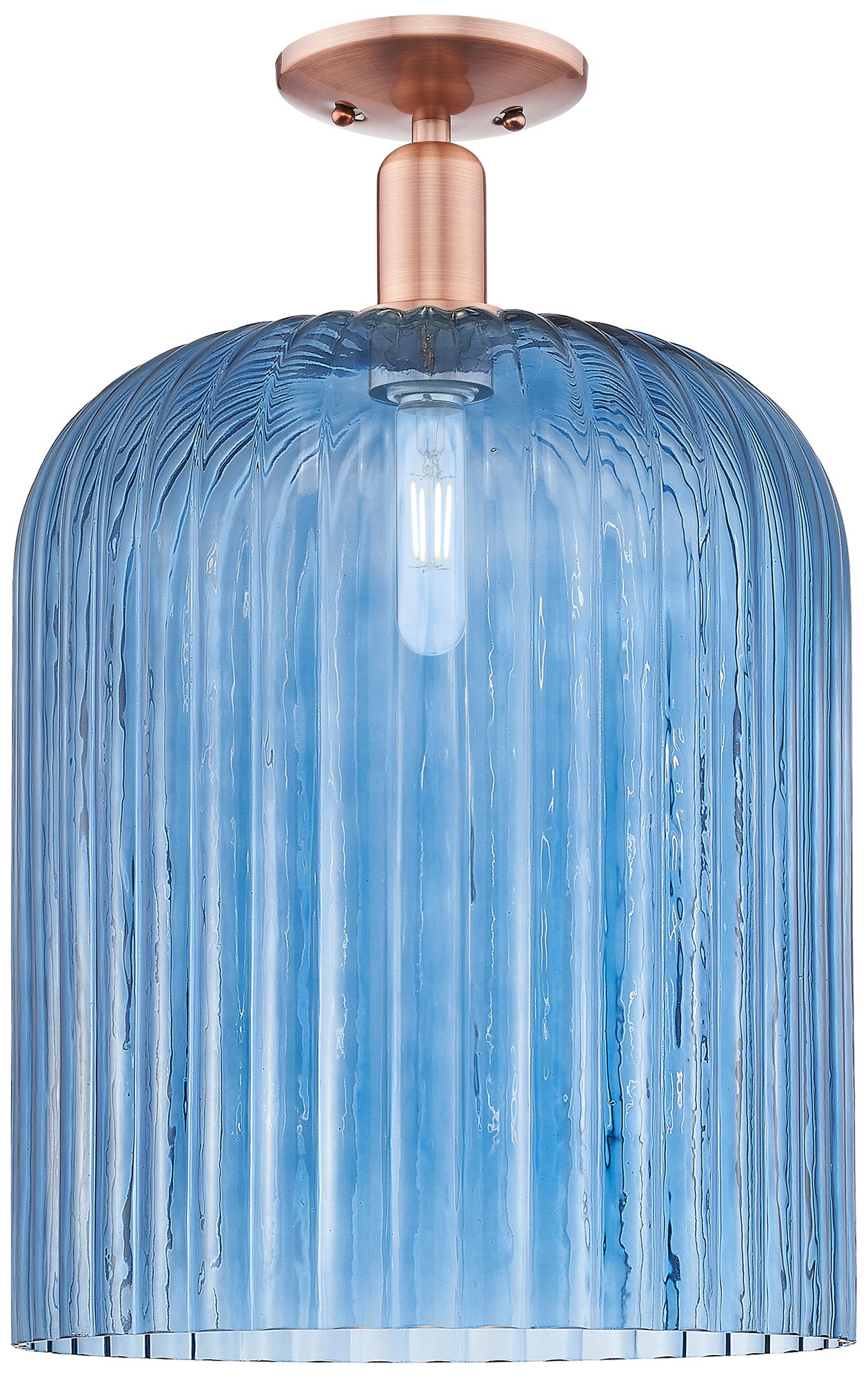 Bridal Veil 12" Wide Antique Copper Semi-Flush Mount With Blue Shade