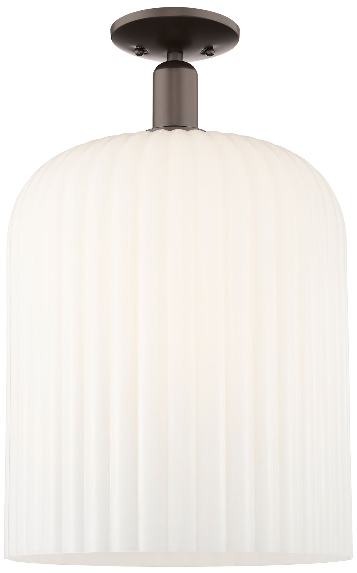 Bridal Veil 12"W Oil Rubbed Bronze Semi-Flush With Gloss White Shade