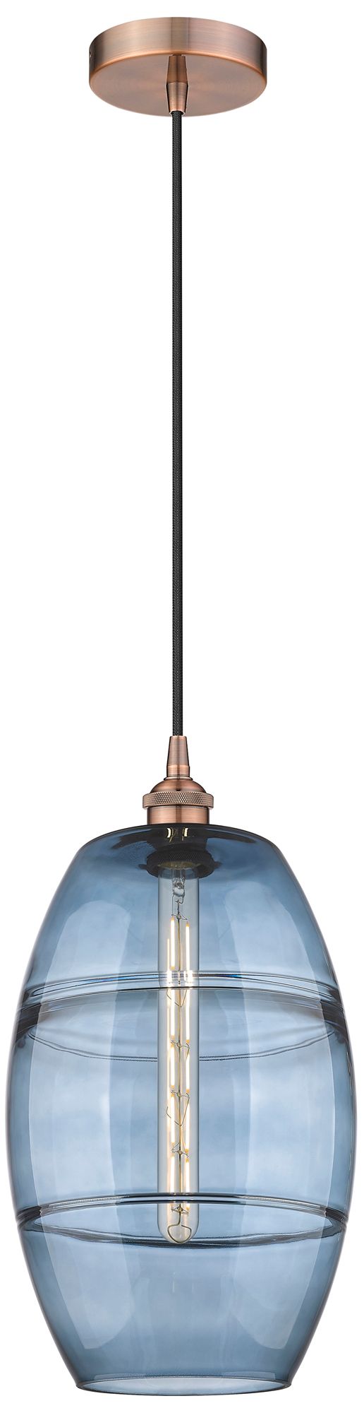 Edison Vaz 10"W Antique Copper Corded Mini Pendant w/ Princess Blue Sh