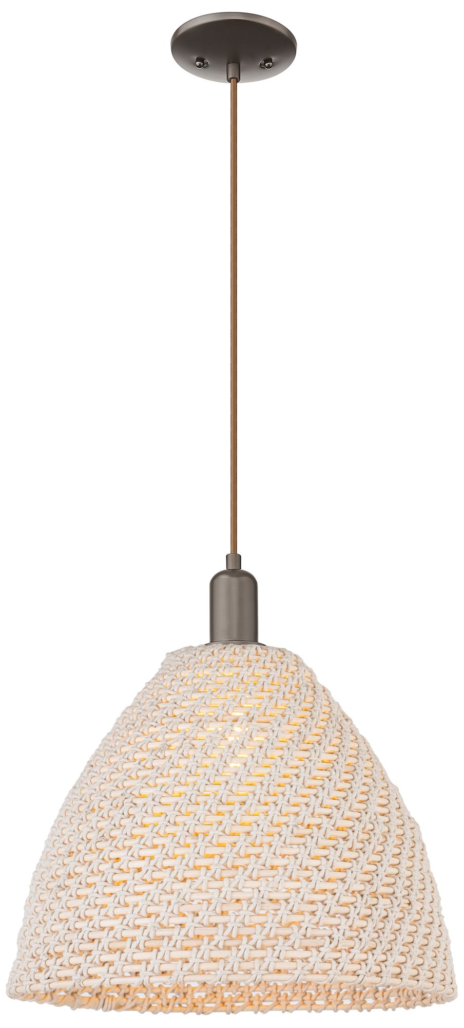Ballston Dome 16"W Oil Rubbed Bronze Cord Mini Pendant w/ Fiber Shade