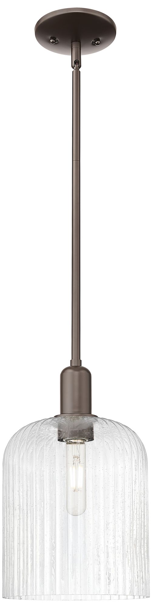 Bridal Veil 8"W Oil Rubbed Bronze Stem Mini Pendant With Seedy Shade