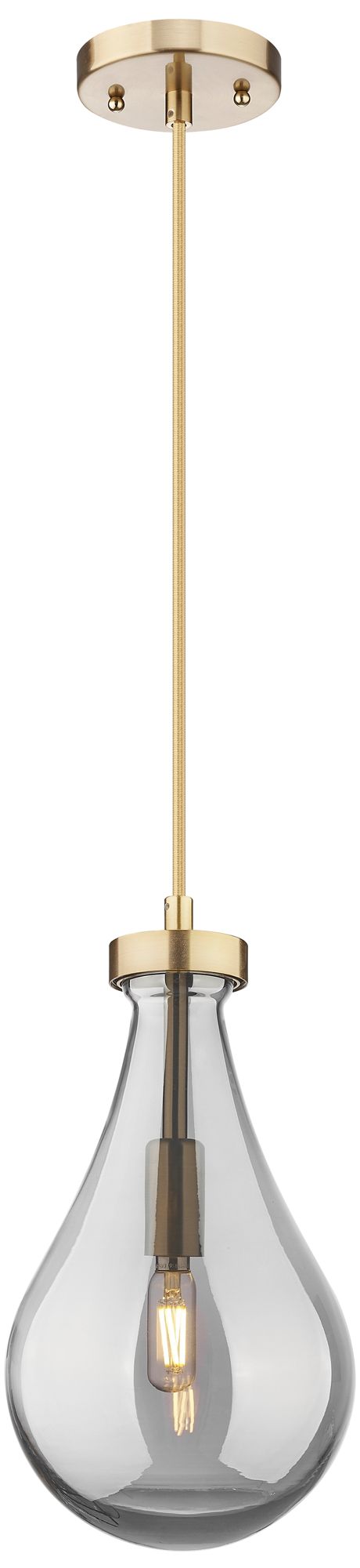 Downtown Owego 7"W Cord Champagne Bronze Pendant w/ Light Smoke Shade