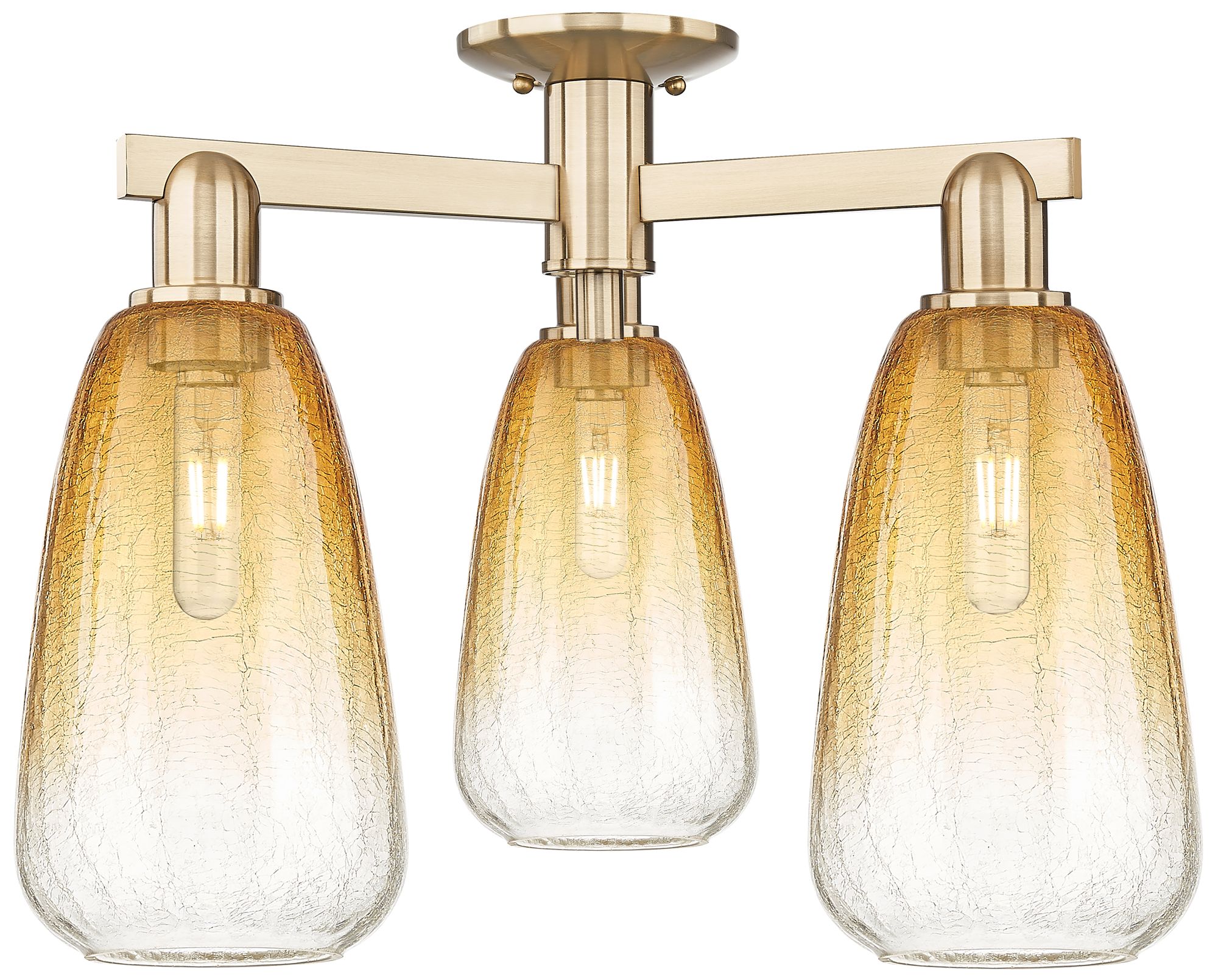 Brookhaven Almond 24"W 3 Light Champagne Semi-Flush With Amber Shade