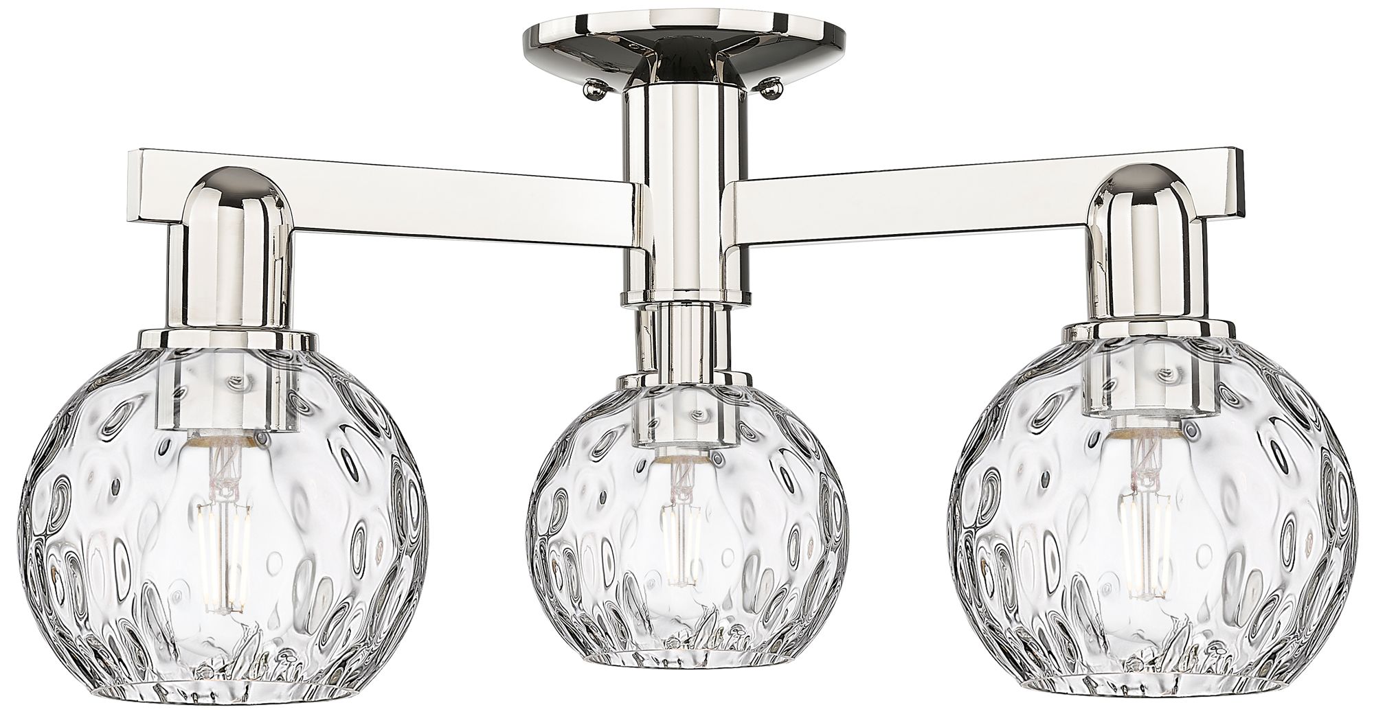 Arcadia Athens 24"W 3-Lt Polished Nickel Semi-Flush w/ Water Glass Shade