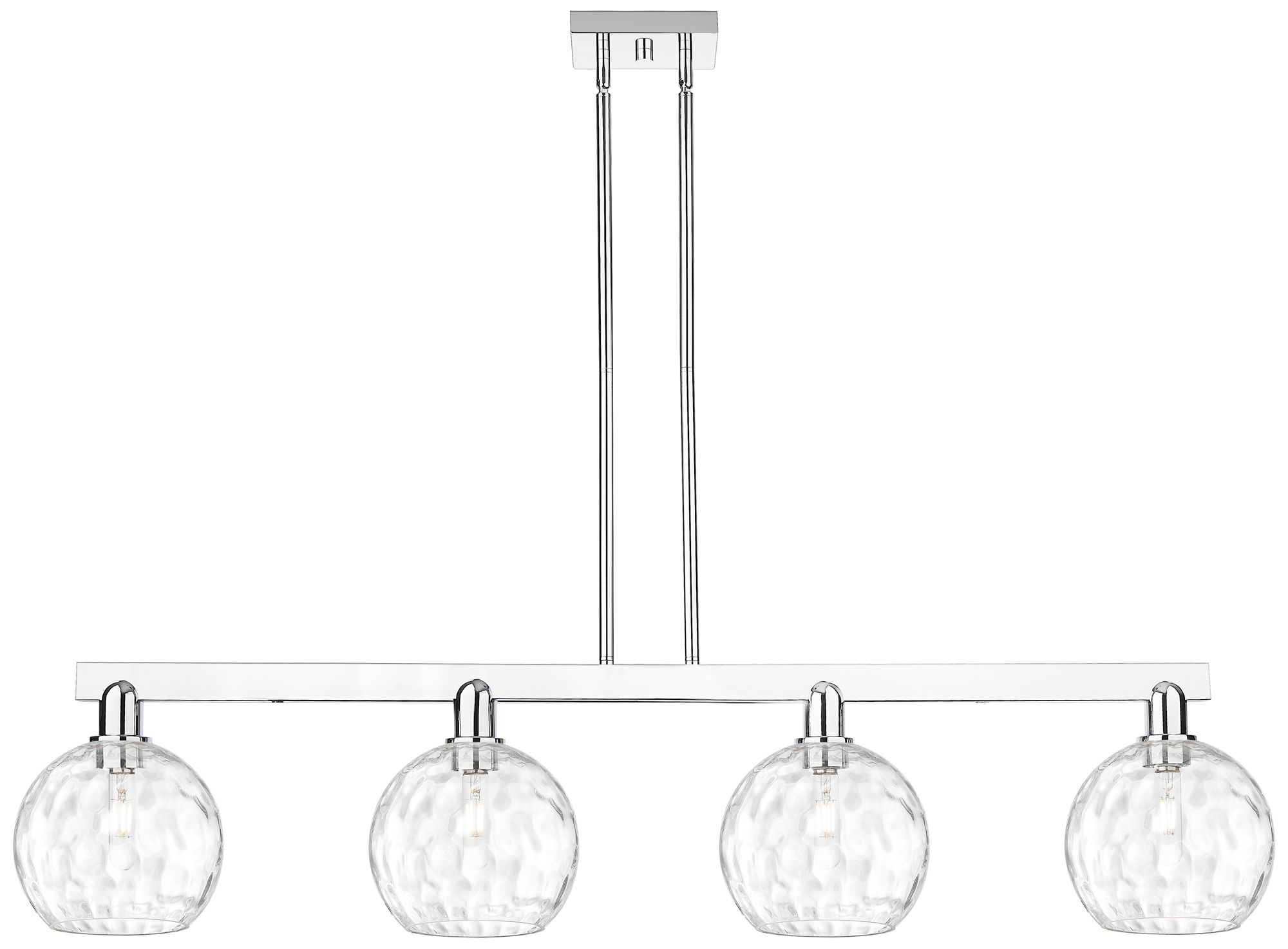 Arcadia Athens 51"W 4-Lt Polish Nickel Stem Island w/ Water Glass Shade