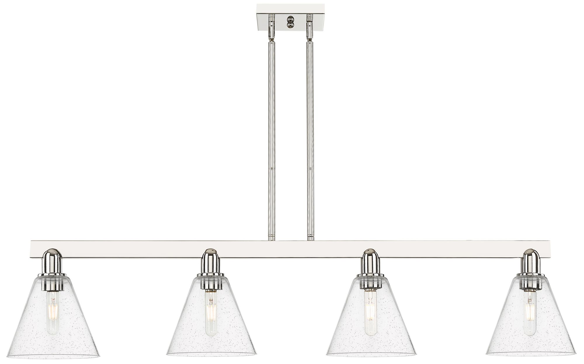 Arcadia Berkshire 51"W 4-Lt Polish Nickel Stem Island Light w/ Seedy Shade