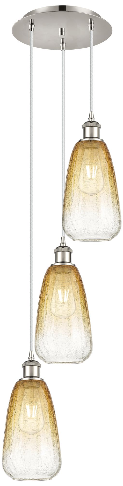 Ballston Brookhaven Almond 13"W 3-Lt Polish Nickel Cord Pendant w/ Amber