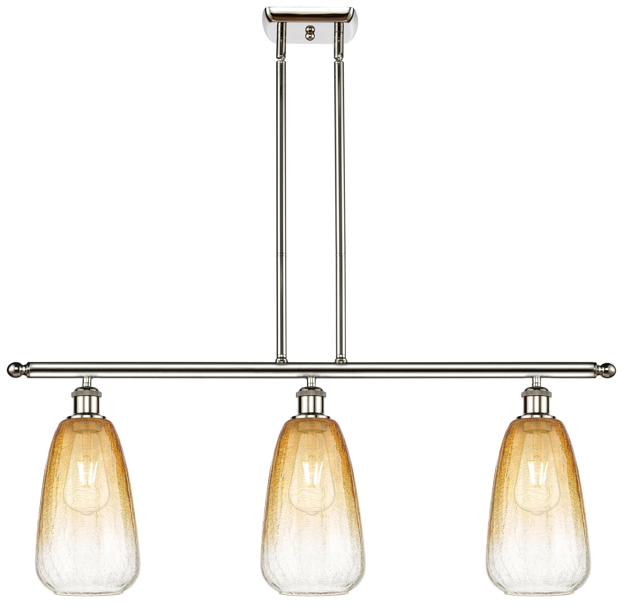 Brookhaven Almond 36"W 3-Light Polished Nickel Island Light w/ Amber Shade