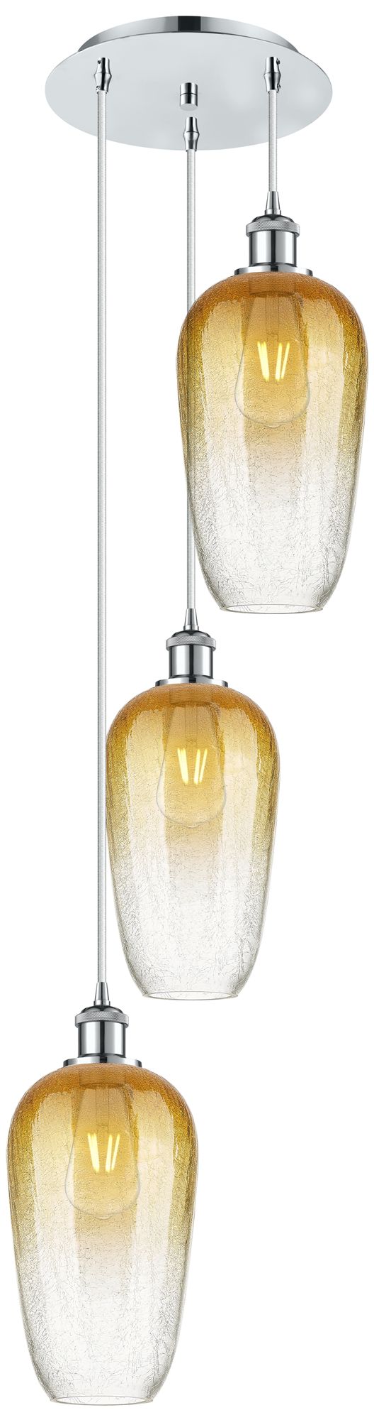 Ballston Brookhaven Flute 14"W 3-Lt Chrome Cord Pendant w/ Amber Shade