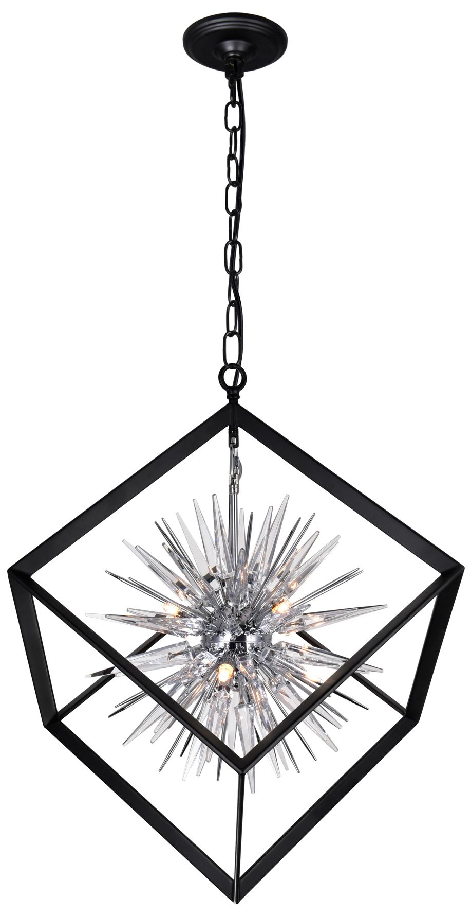 Starburst 6 Light Chrome & Black Chandelier