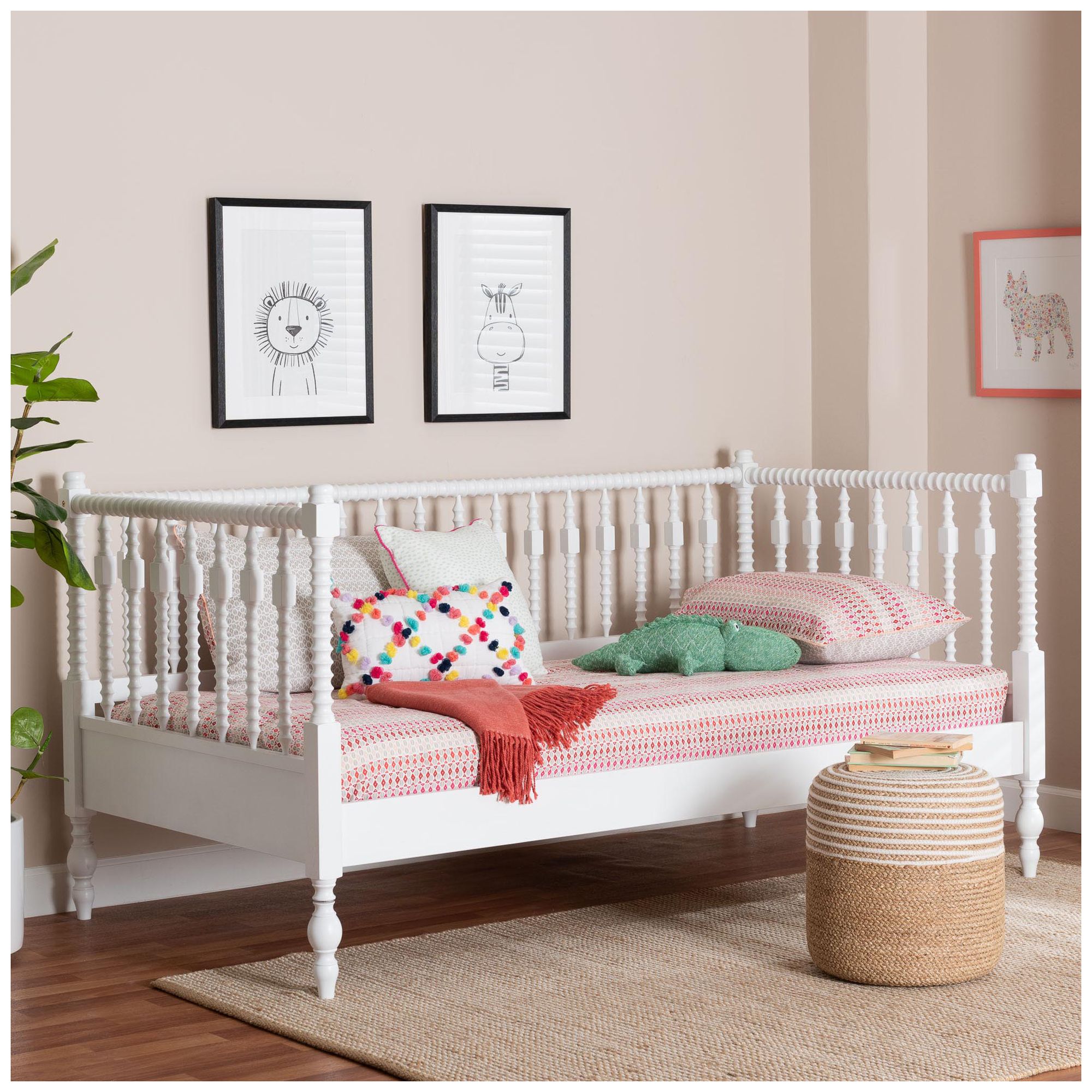 Baxton Studio Callison Spindle Daybed - Turned Sofa Bed, White, Twin