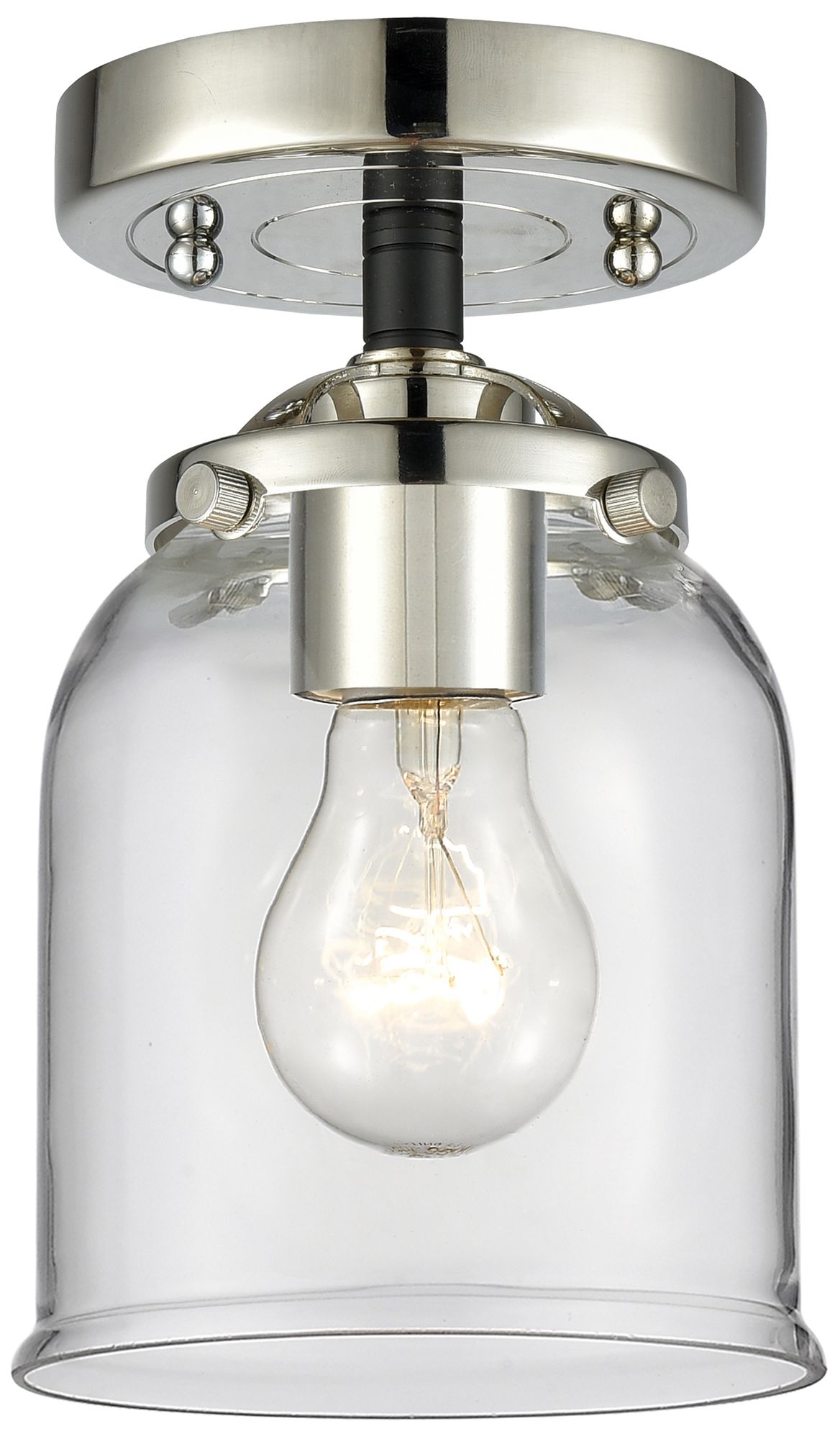 Nouveau Bell 5"W Black Polished Nickel Semi.Flush Mount w/ Clear Shade