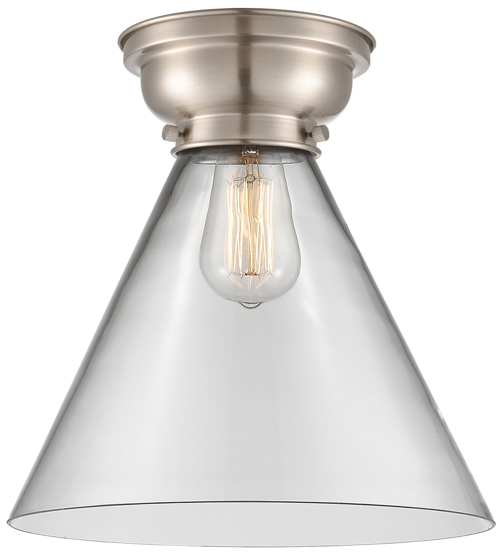 Aditi Cone 12" Wide Brushed Satin Nickel Flush Mount With Clear Shade