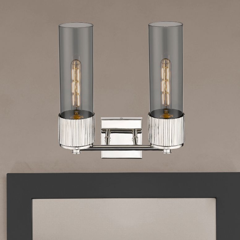 Crown Point 13.88"W 2 Light Polished Nickel Bath Light w/ Smoke Shade