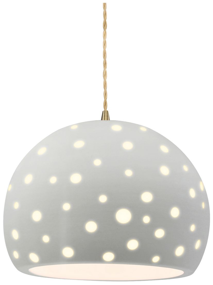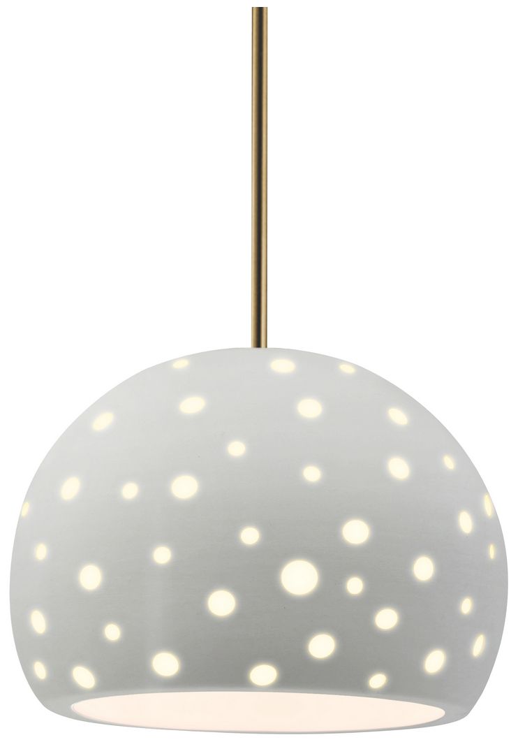Perforated Globe 12.25"W Matte White, Antique Brass Pendant - Rigid Stem