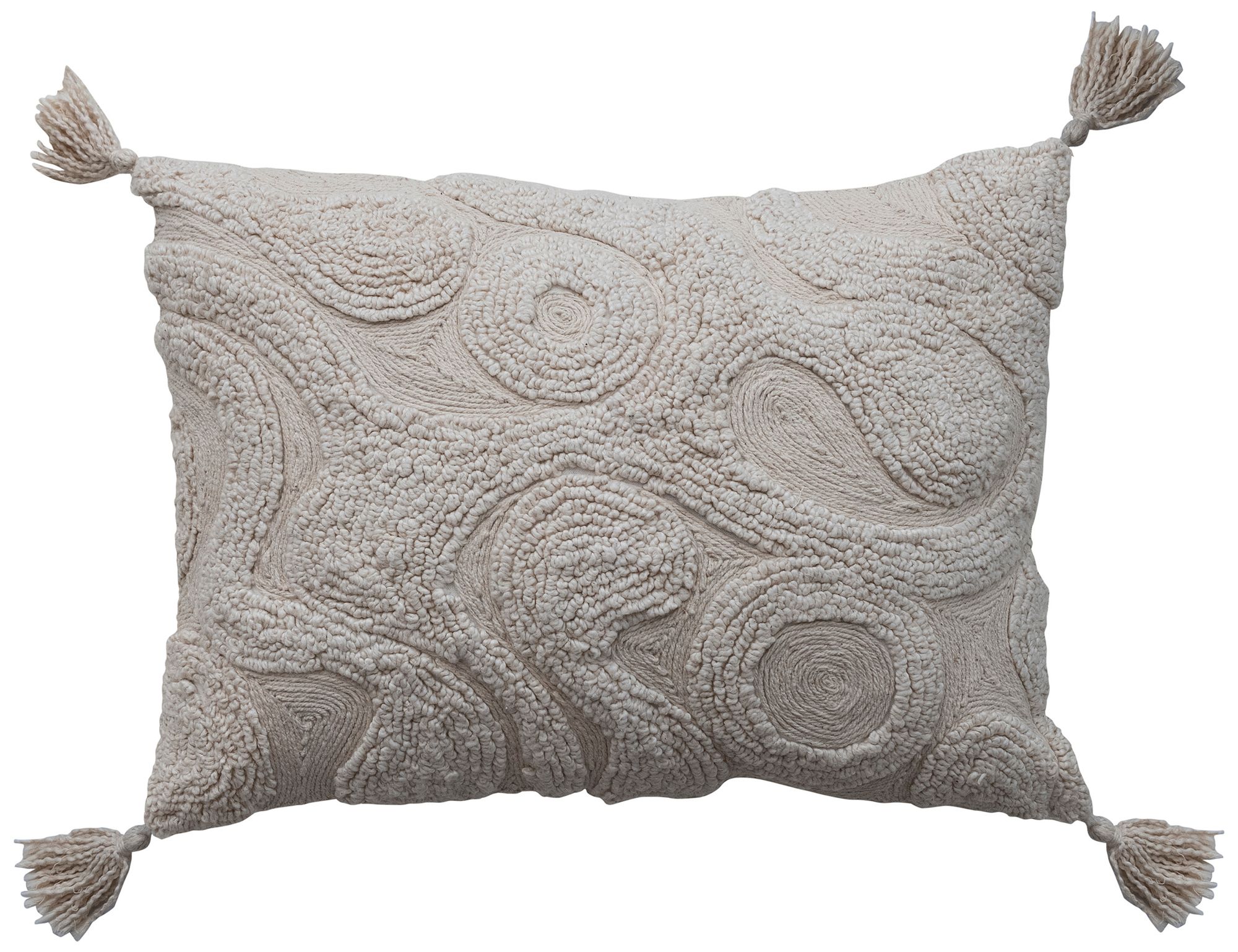 Cotton Tufted Rectangular Lumbar Pillow with Decorative Design and Tassels