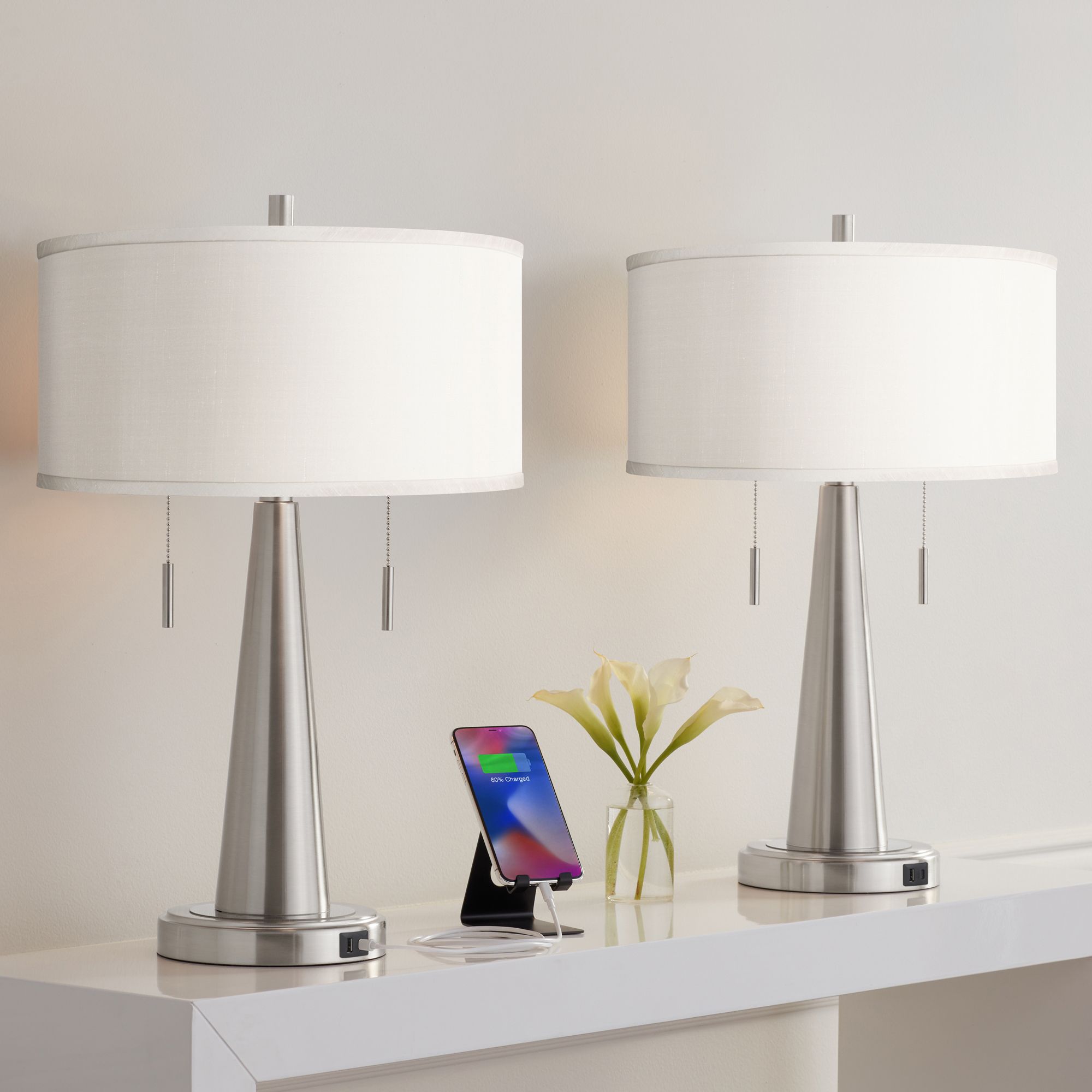 Possini Euro Vicki 23" Cream Faux Silk Nickel USB Table Lamps Set of 2