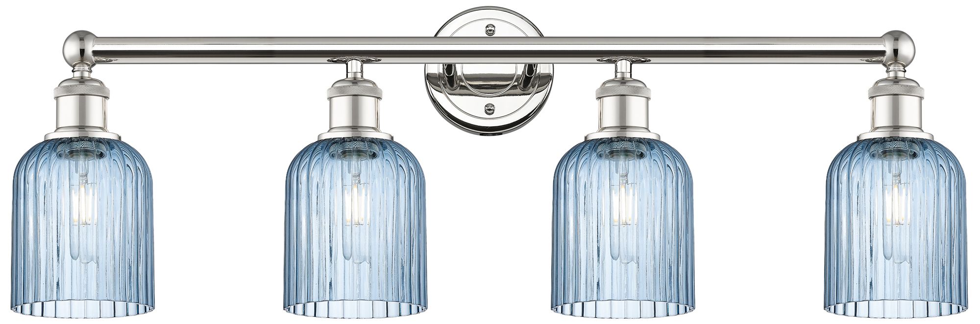 Edison Bridal Veil 4 Light 32" Bath Vanity Nickel Princess Blue Shade