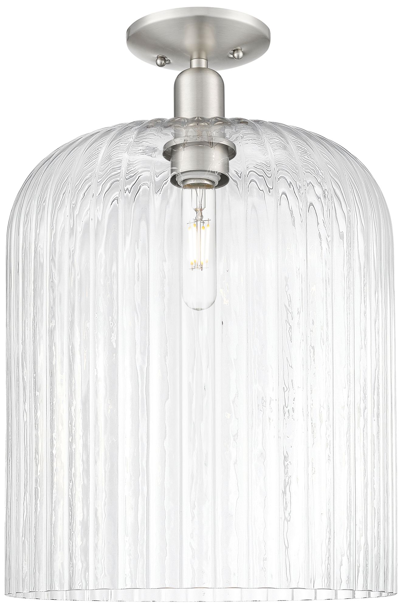 Downtown Bridal Veil 12"W Satin Nickel Semi Flush Mount w/ Clear Shade