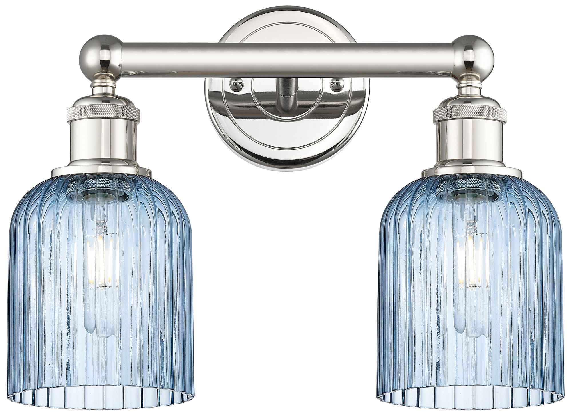 Edison Bridal Veil 2 Light 14" Bath Vanity Nickel Princess Blue Shade