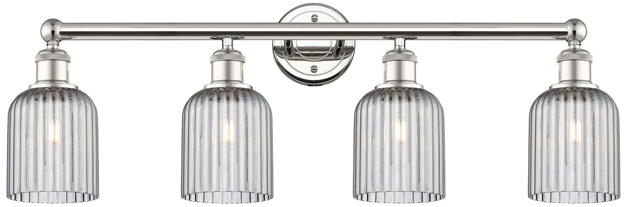 Edison Bridal Veil 4 Light 32" Bath Vanity Nickel Gloss White Shade