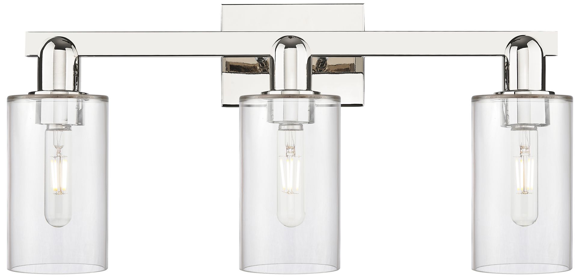 Arcadia Clymer 23"W 3 Light Polished Nickel Bath Light w/ Clear Shade