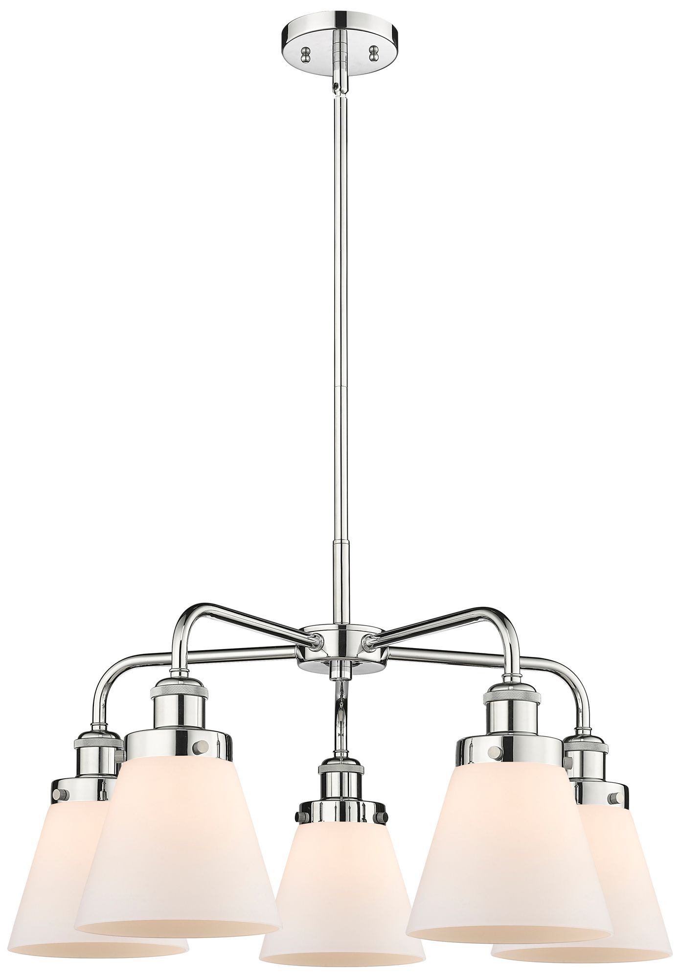 Cone 24.25"W 5 Light Polished Chrome Stem Hung Chandelier w/ White Sha
