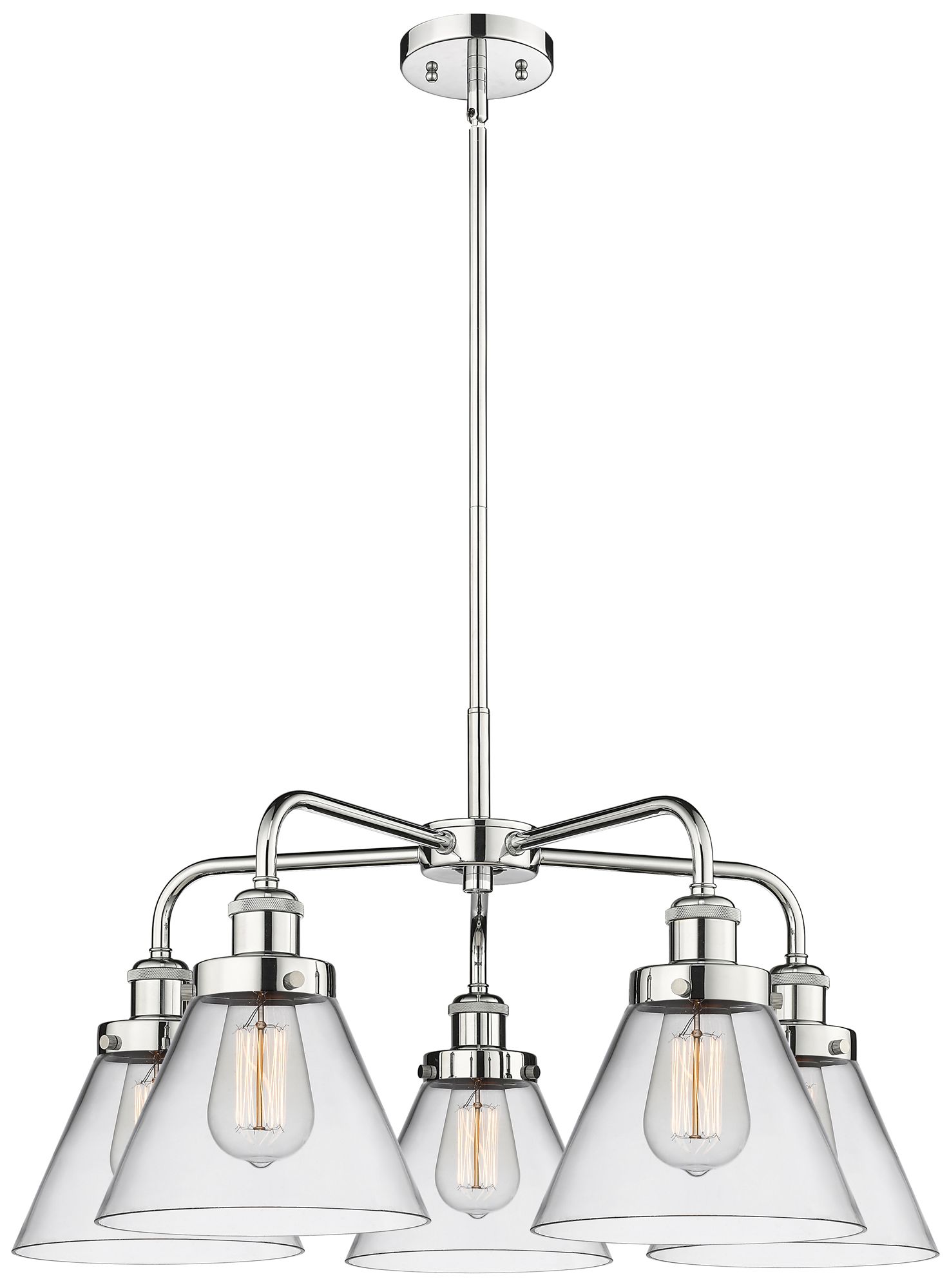 Cone 25.75"W 5 Light Polished Chrome Stem Hung Chandelier w/ Clear Sha