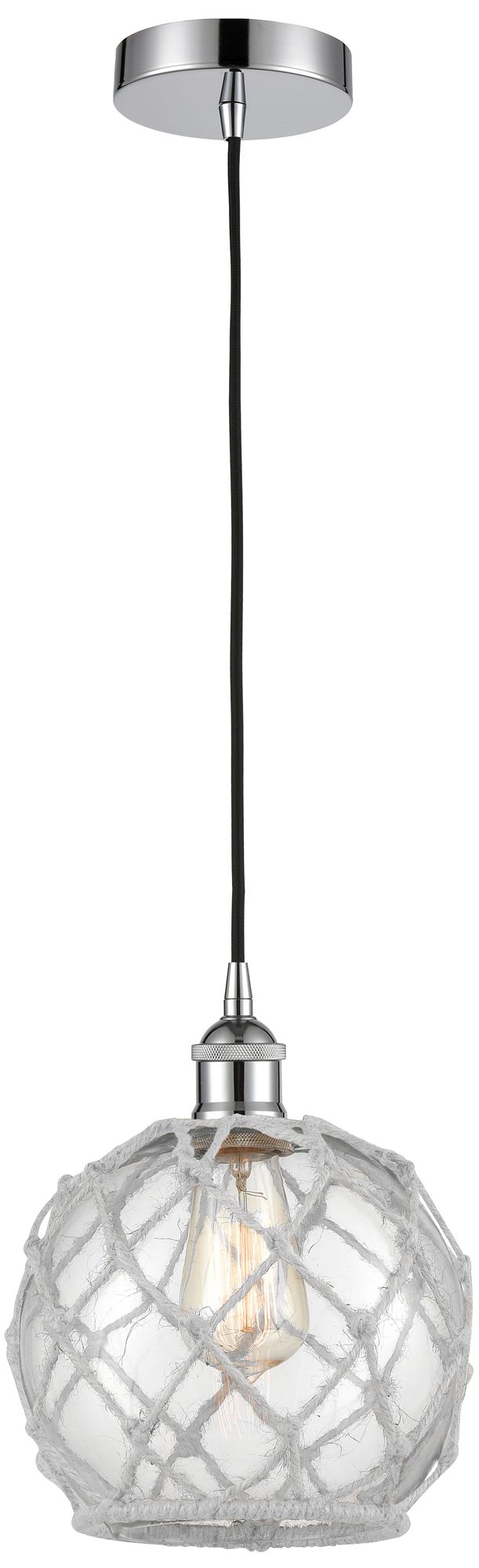 Edison Farmhouse 8" Chrome Corded Mini Pendant w/ Clear & White Ro