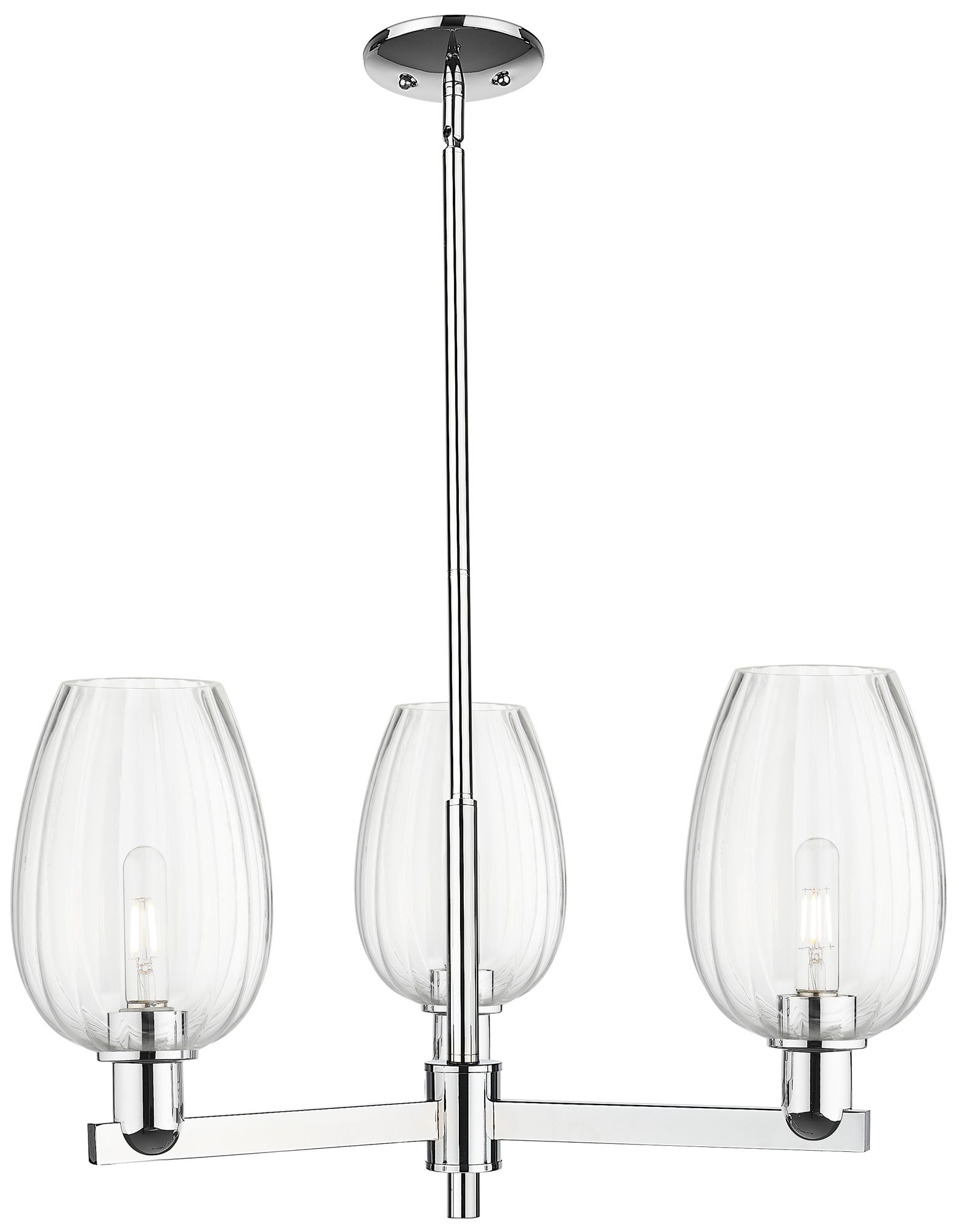 Preston 18"W 3 Light Chrome Stem Chandelier With Flute Clear Shade