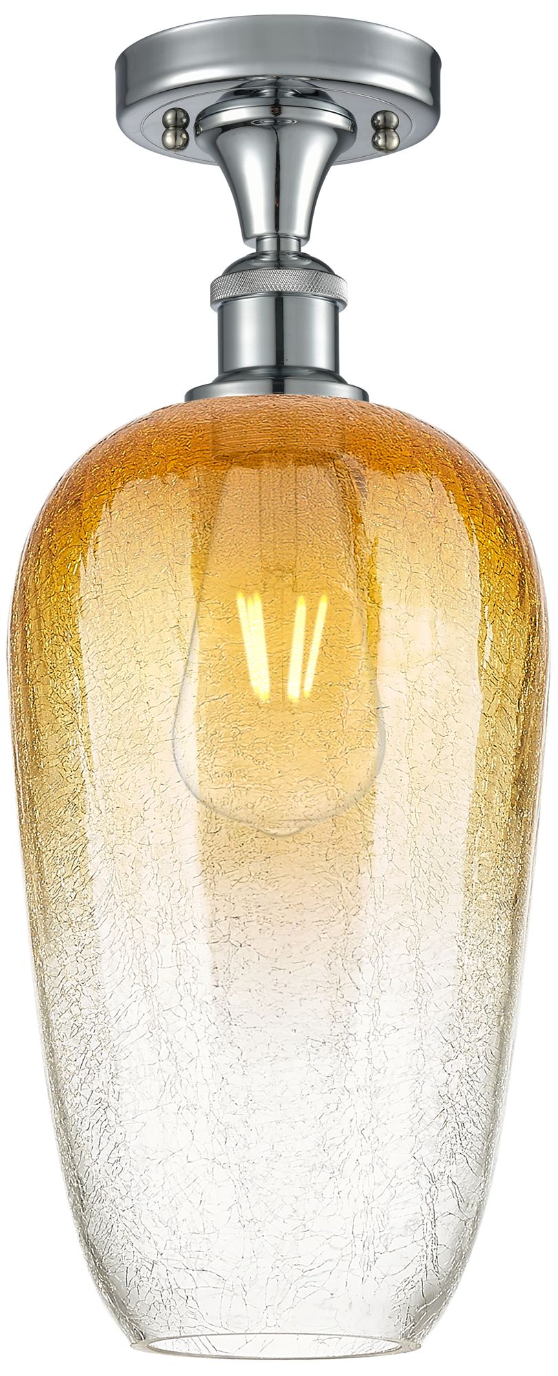 Ballston Brookhaven Flute 7"W Chrome Semi.Flush Mount w/ Amber Shade