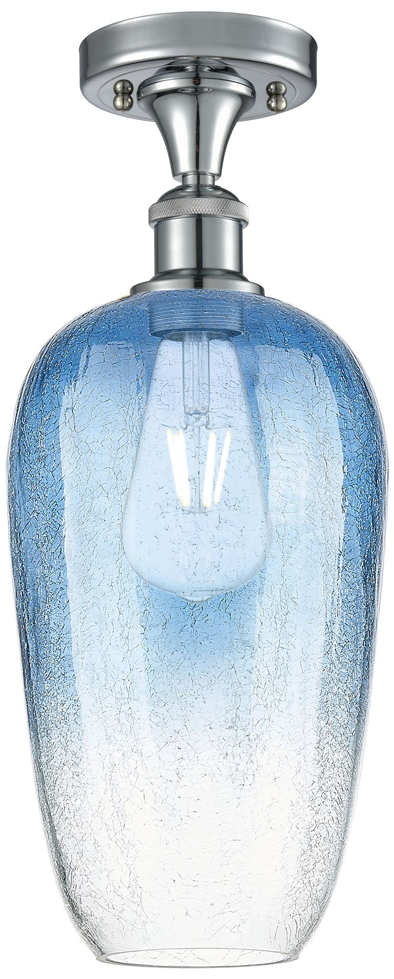 Ballston Brookhaven Flute 7"W Chrome Semi-Flush w/ Sapphire Shade