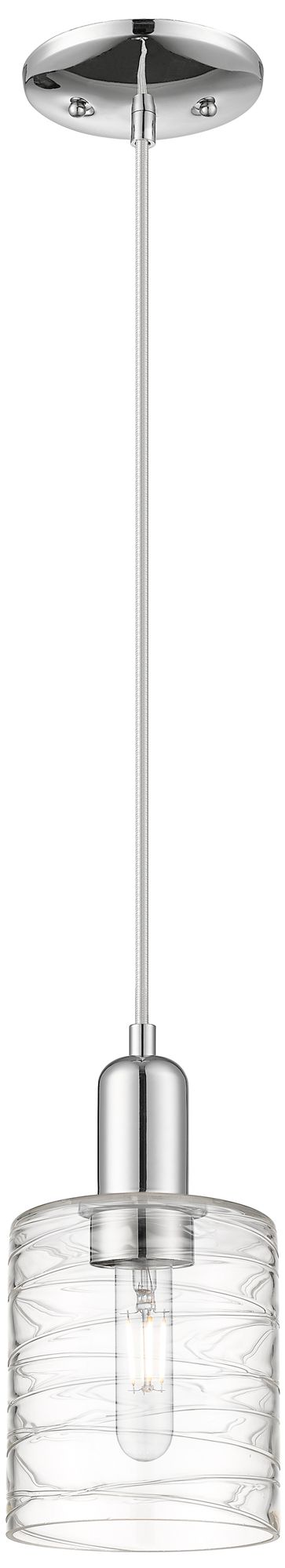 Arcadia Cobbleskill 5"W Chrome Cord Mini Pendant w/ Deco Swirl Shade