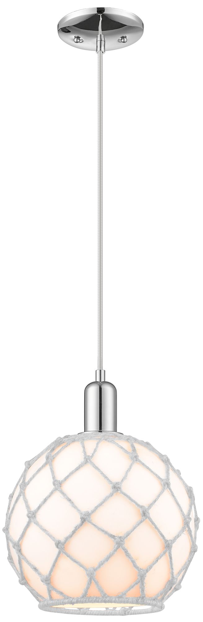 Arcadia Farmhouse Rope 10"W Chrome Cord Pendant w/ White Glass Shade