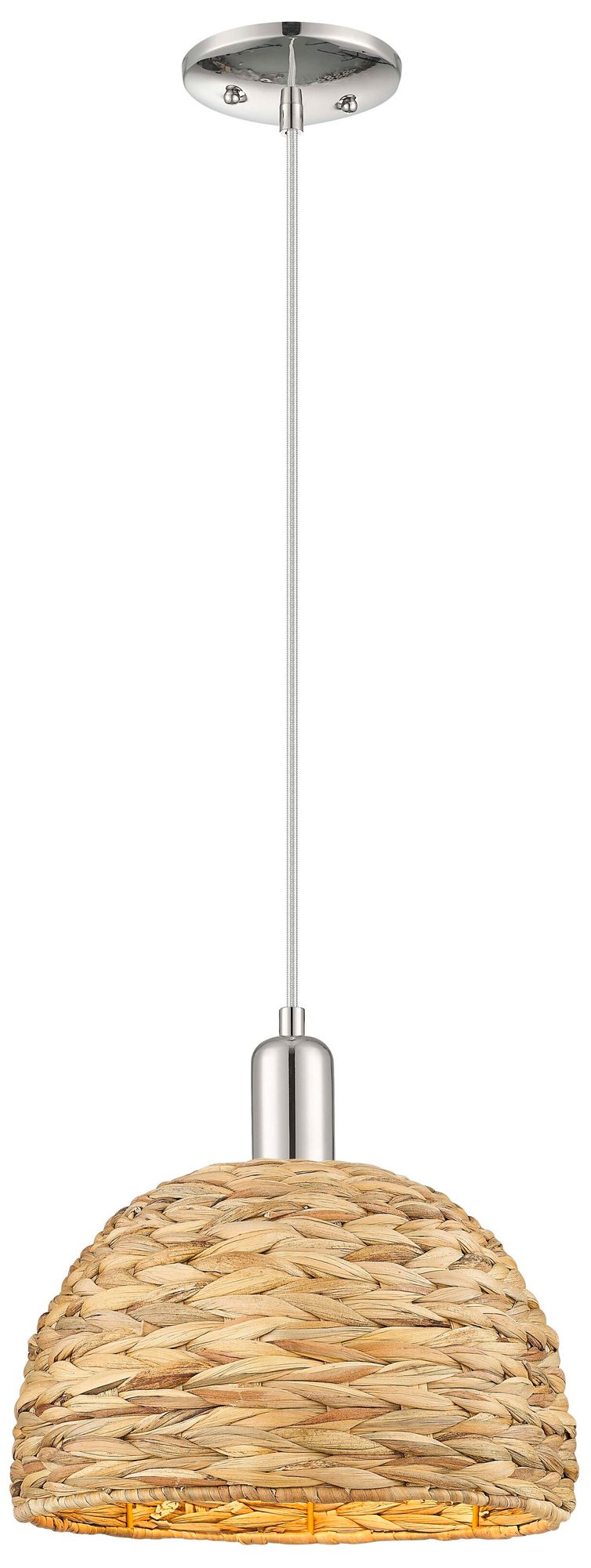 Arcadia Woven Rattan 12" Wide Polished Nickel Cord Hung Mini Pendant