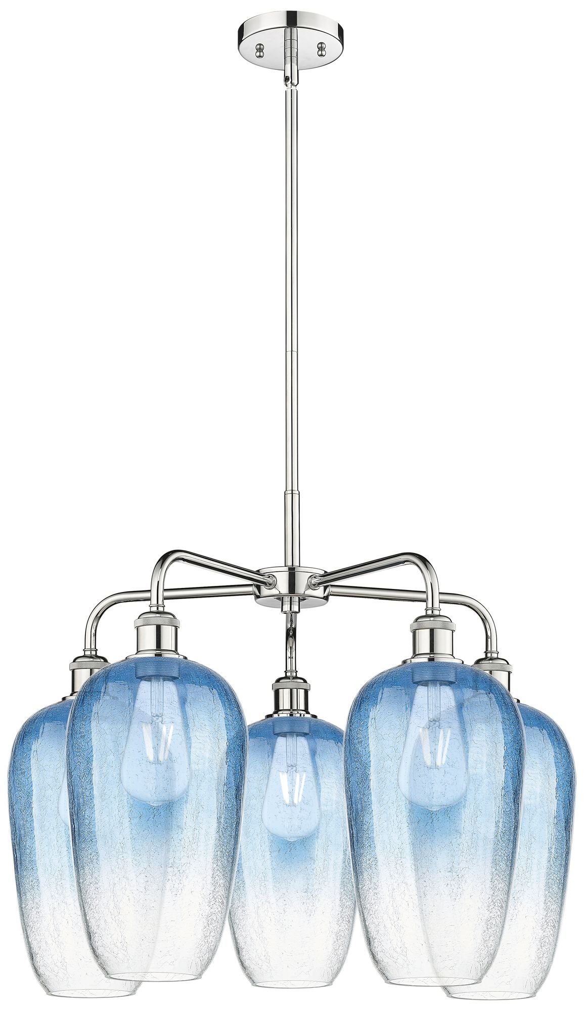 Ballston Brookhaven Flute 26"W 5 Light Chrome Stem Chandelier w/ Blue Shade