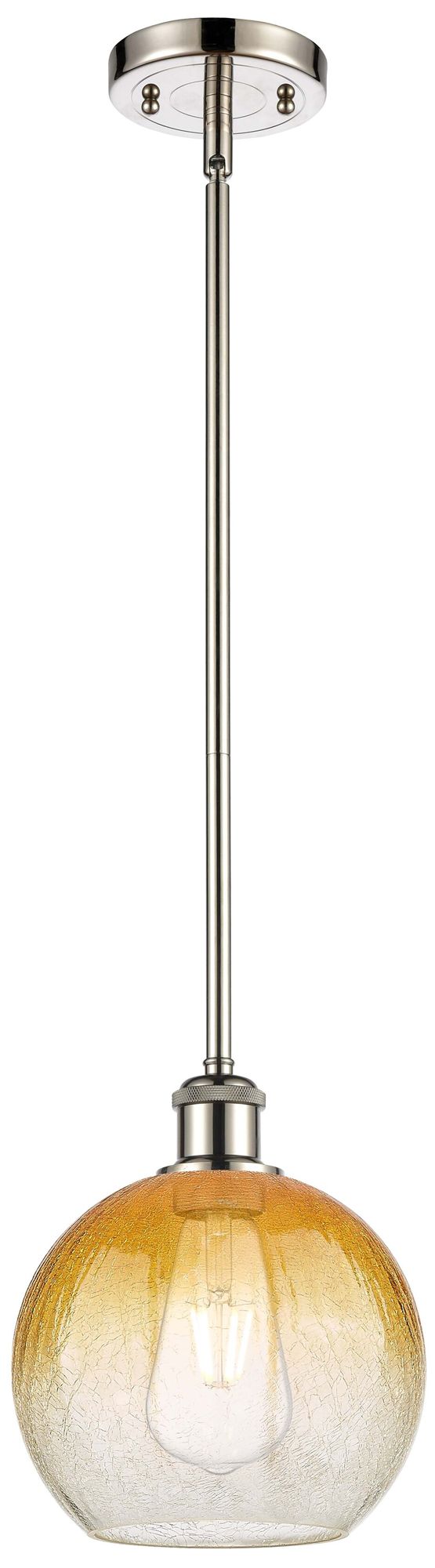 Ballston Brookhaven Globe 8"W Polished Nickel Stem Pendant w/ Amber Shade