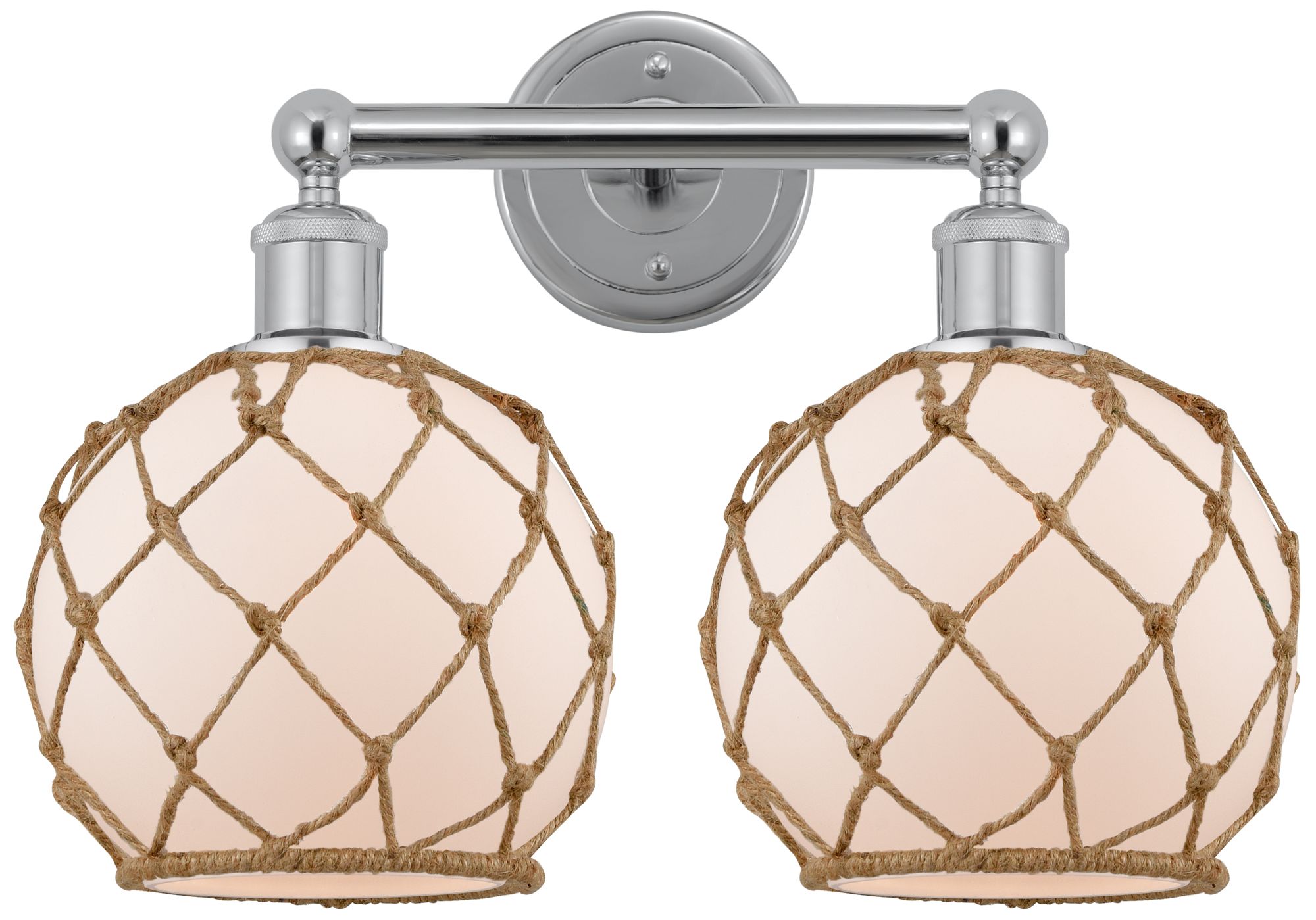 Edison Farmhouse 17"W 2 Light Chrome Bath Light w/ White Brown Shade