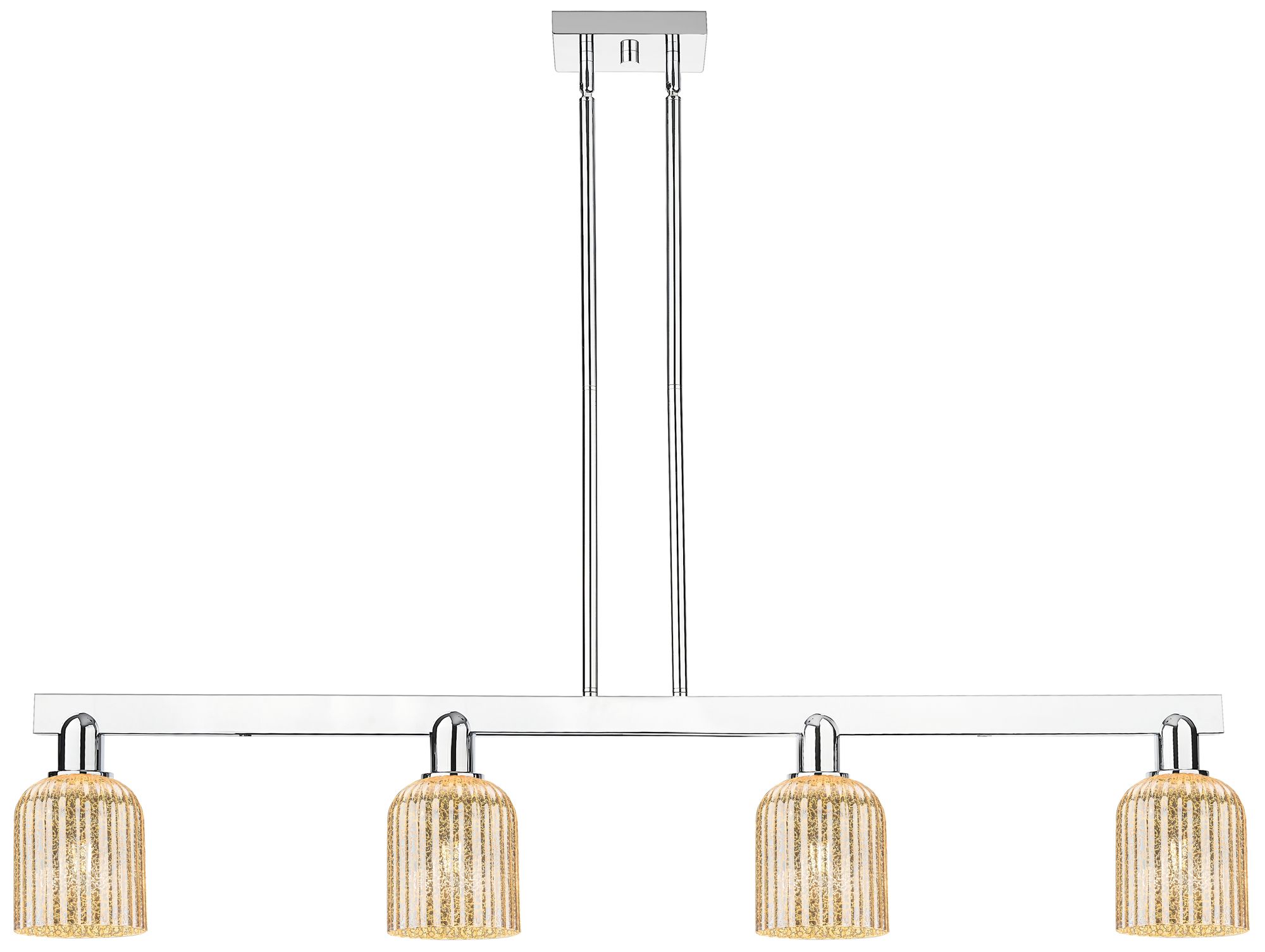 Bridal Veil 47.75"W 4 Light Chrome Stem Island Light w/ Mercury Shade