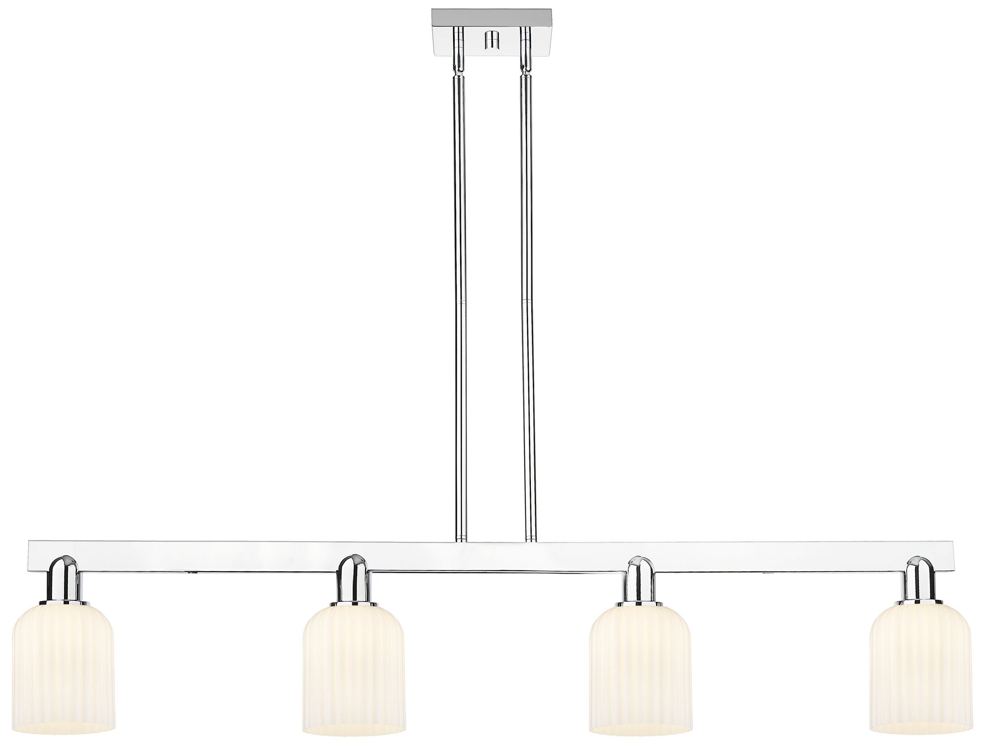 Bridal Veil 48"W 4 Light Chrome Stem Island Light w/ Gloss White Shade