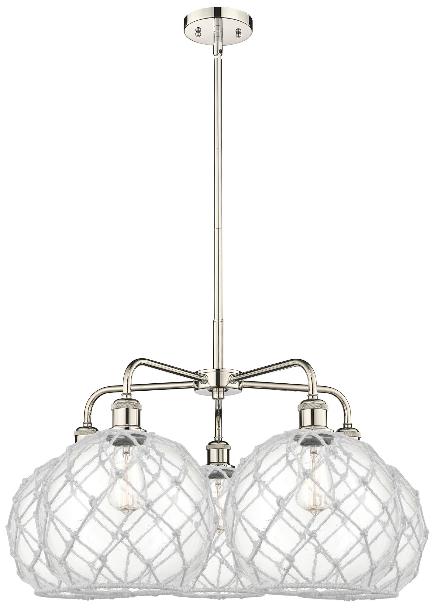 Ballston Farmhouse 29"W 5-Lt Polish Nickel Chandelier w/ Clear White Shade