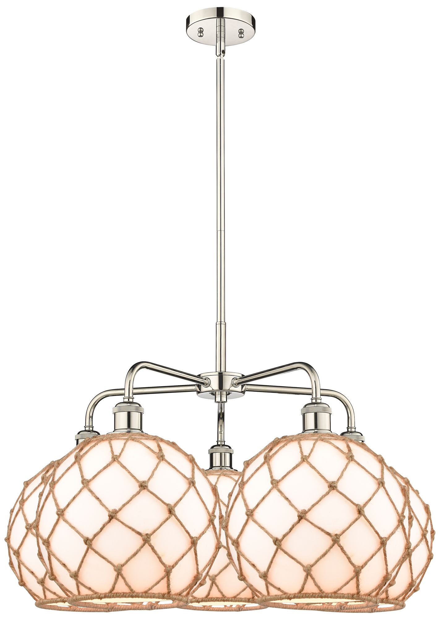 Ballston Farmhouse 29"W 5-Lt Polish Nickel Chandelier w/ White Brown Shade