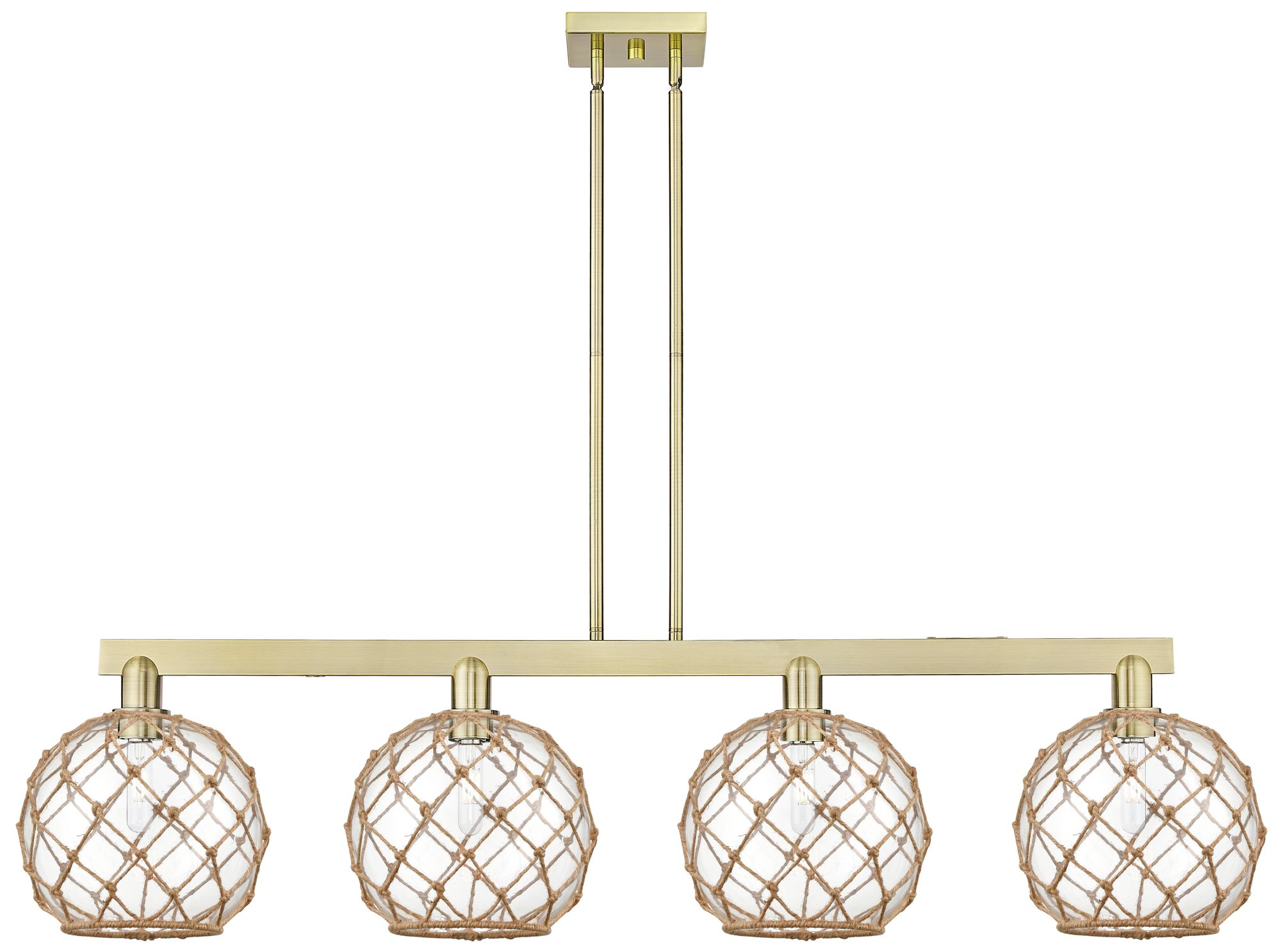 Arcadia Farmhouse 53"W 4-Lt Brass Stem Island Light w/ Clear Brown Shade