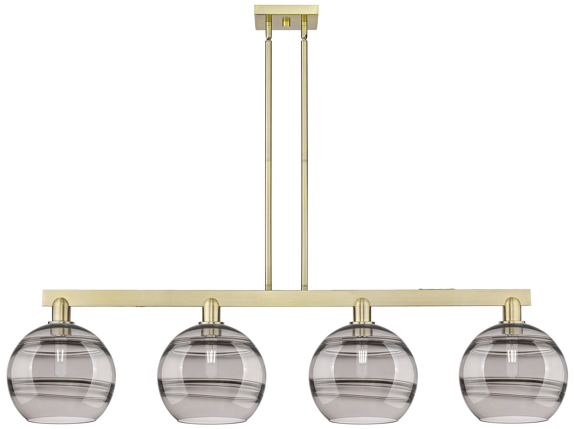 Arcadia Rochester 53"W 4-Lt Brass Stem Island Light w/ Light Smoke Shade