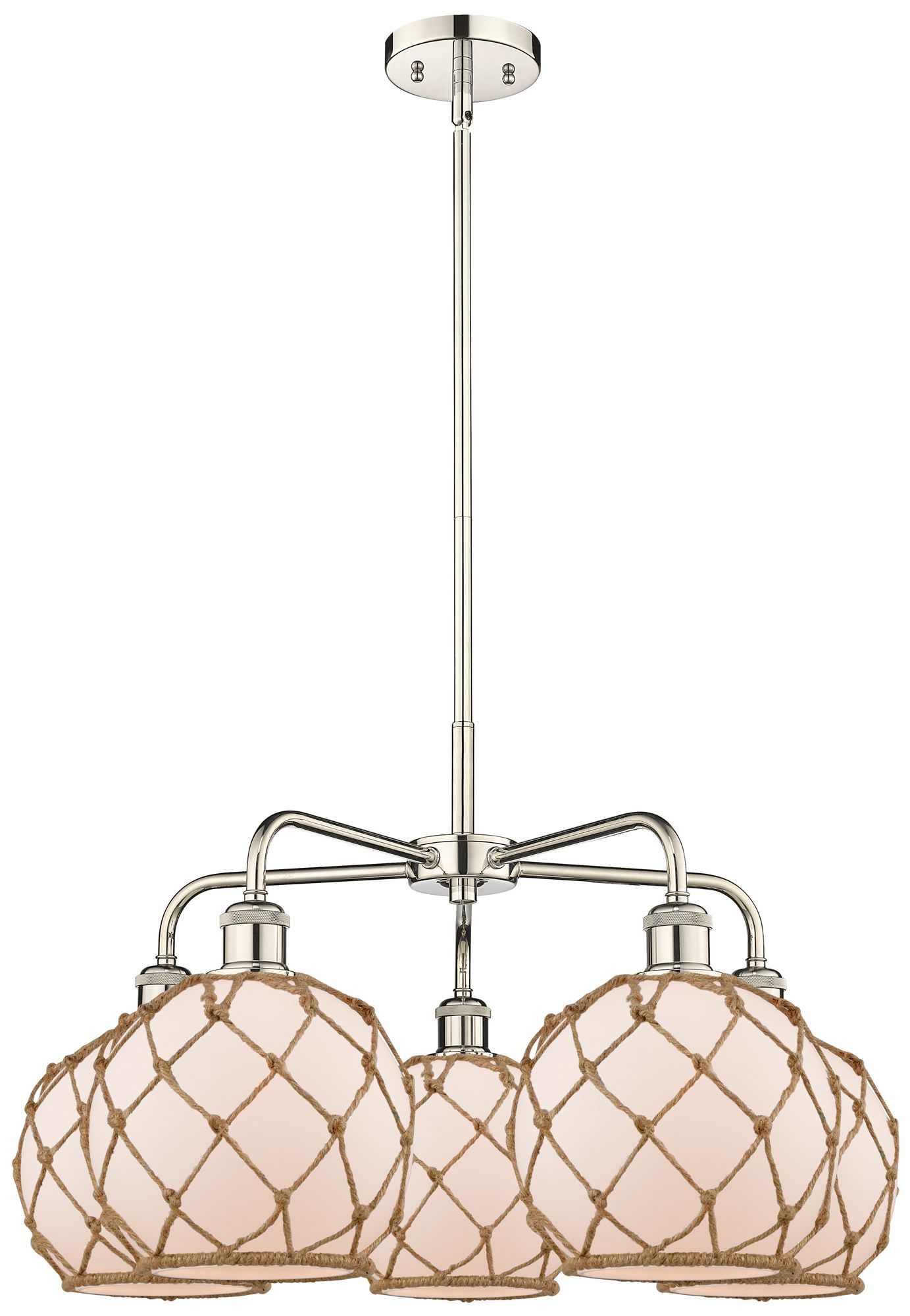 Ballston Farmhouse 27"W 5-Lt Polish Nickel Chandelier w/ White Brown Shade