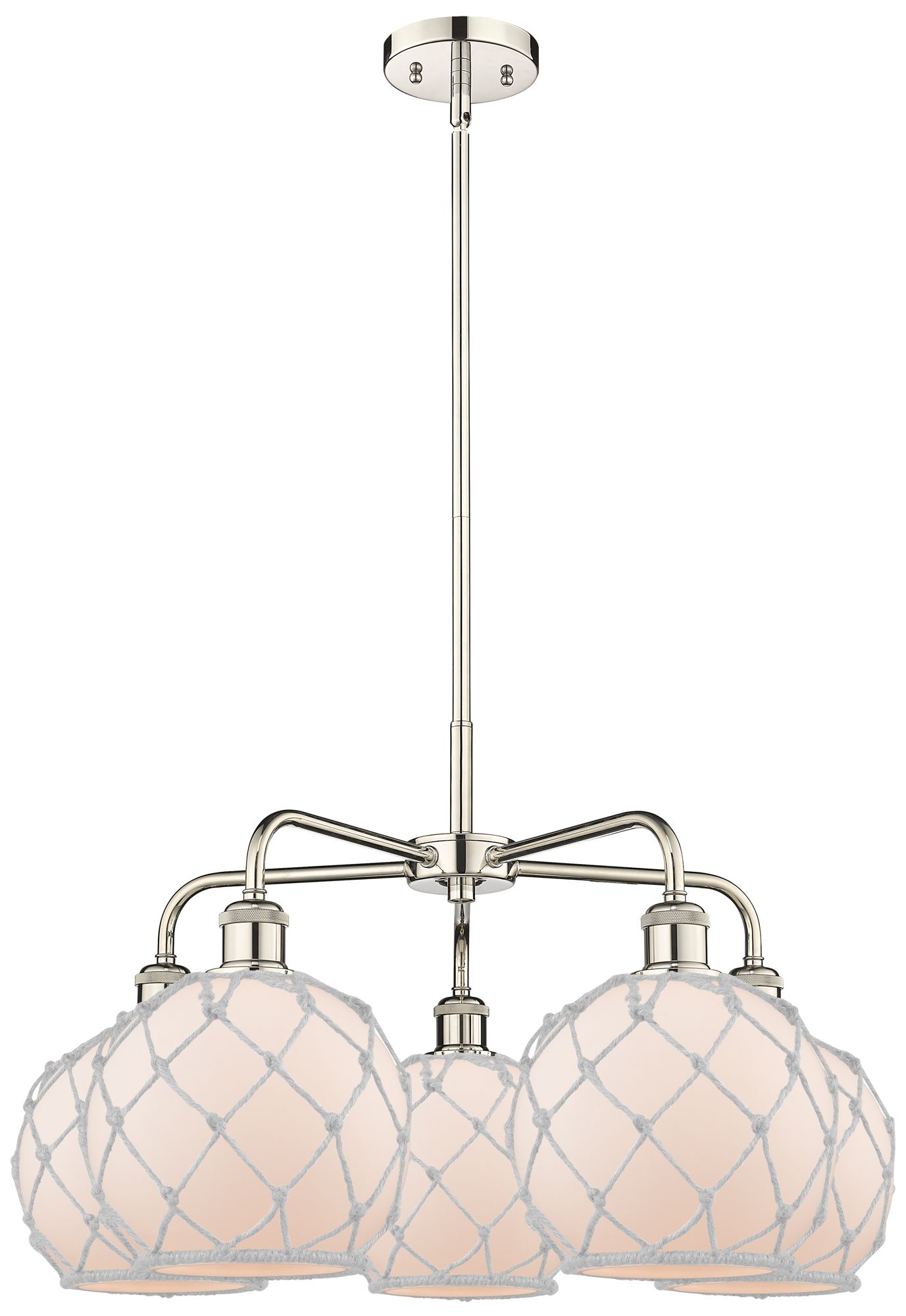 Ballston Farmhouse 27"W 5-Lt Polish Nickel Stem Chandelier w/ White Shade