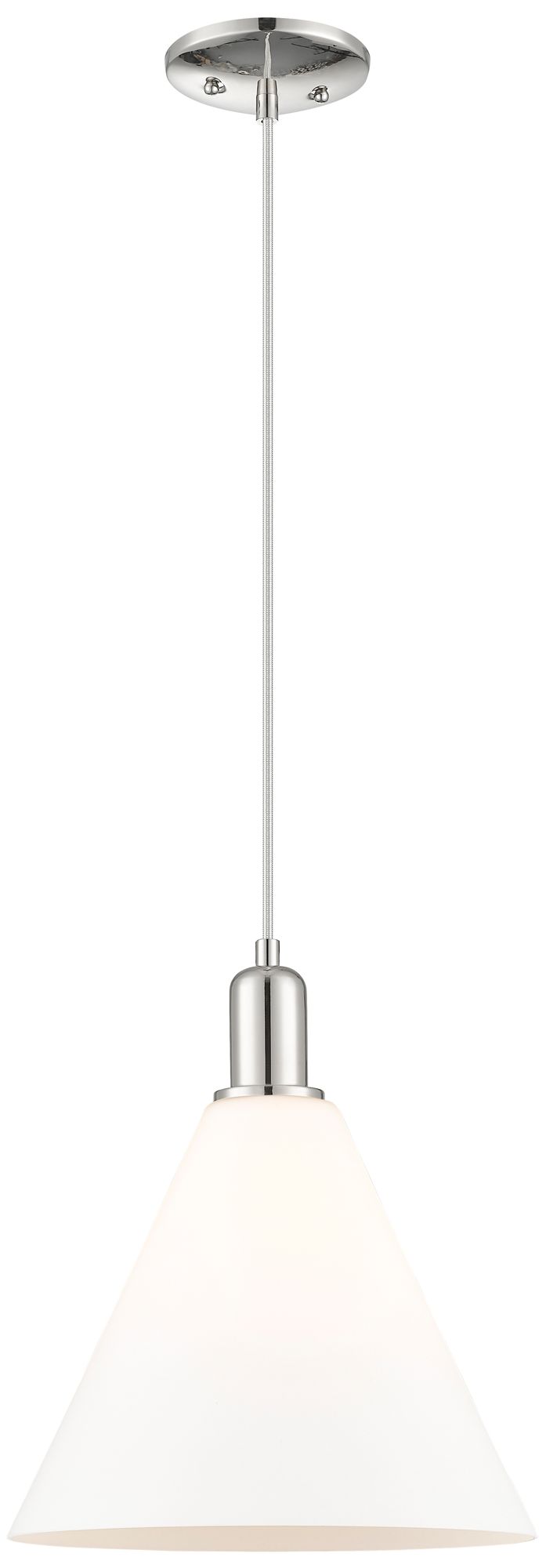 Arcadia Berkshire 12"W Polished Nickel Cord Pendant w/ White Shade