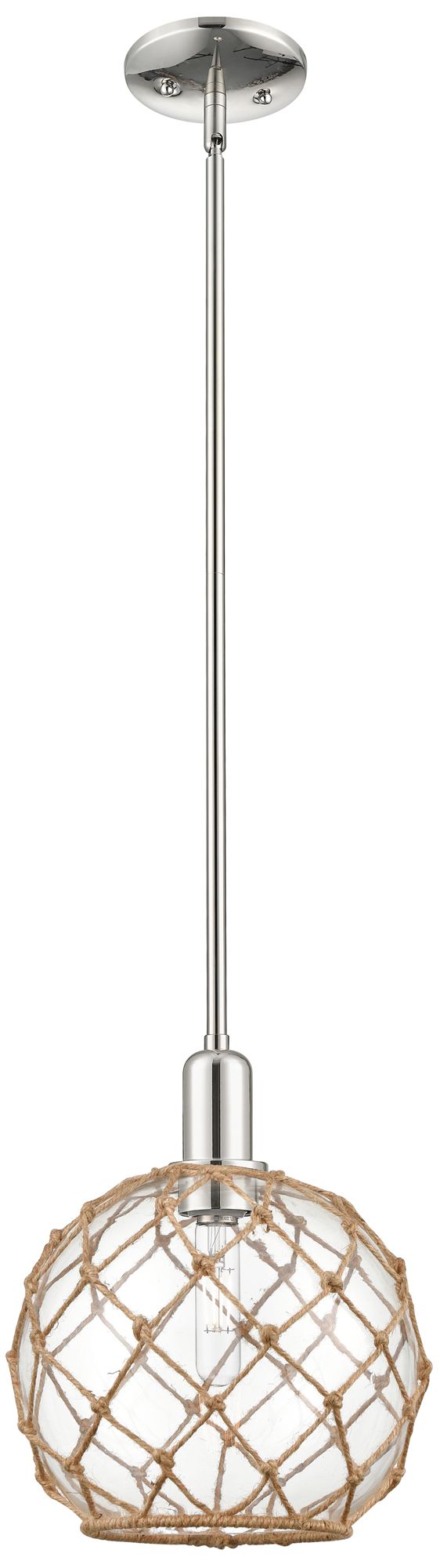 Arcadia Farmhouse 10"W Polished Nickel Stem Pendant w/ Clear Brown Shade
