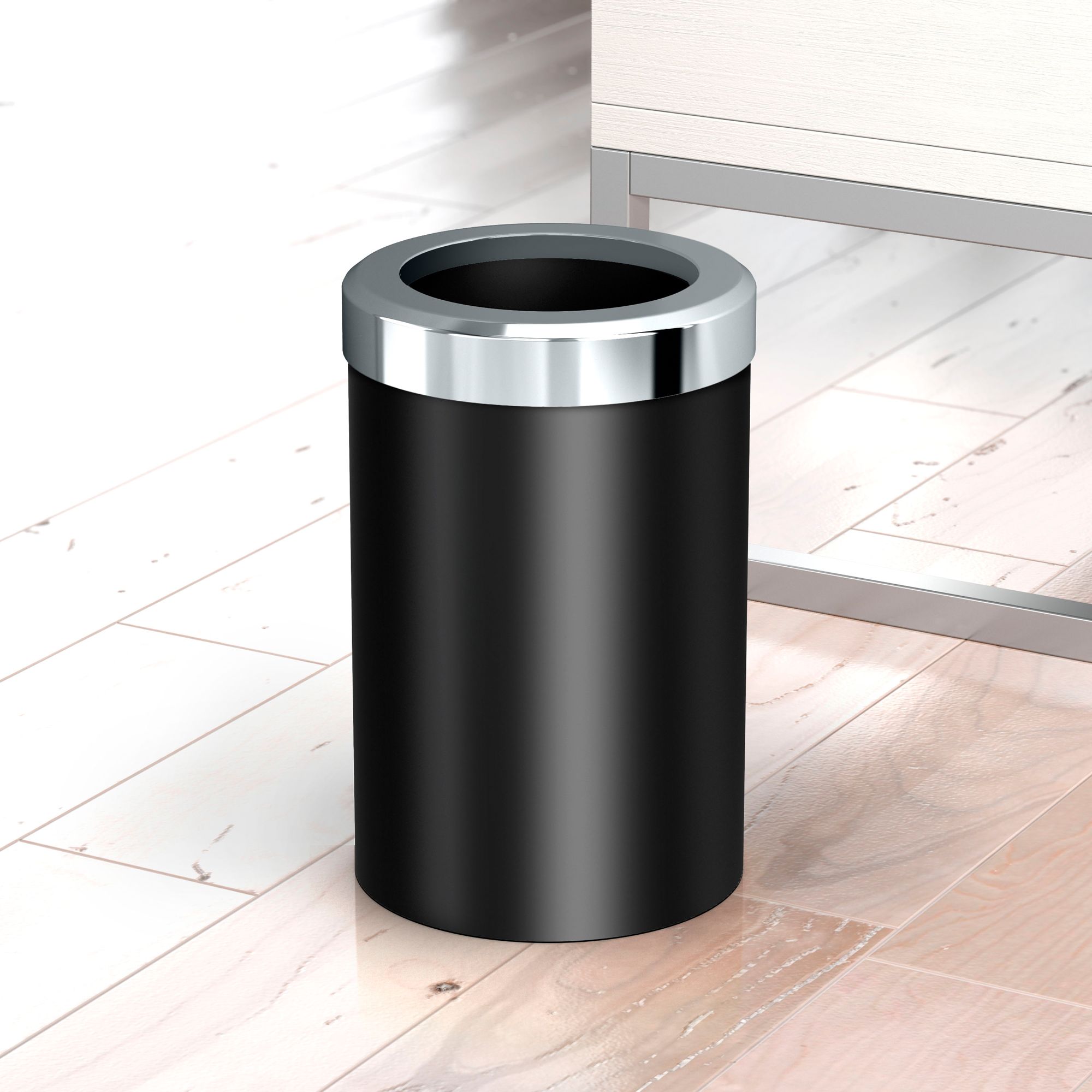 Gatco Round Wastebasket 11.875", Matte Black/Chrome Lid